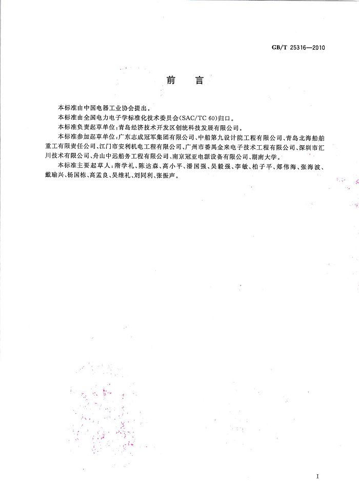 創(chuàng)統(tǒng)負責起草制訂GB/T25316《靜止式岸電裝置》